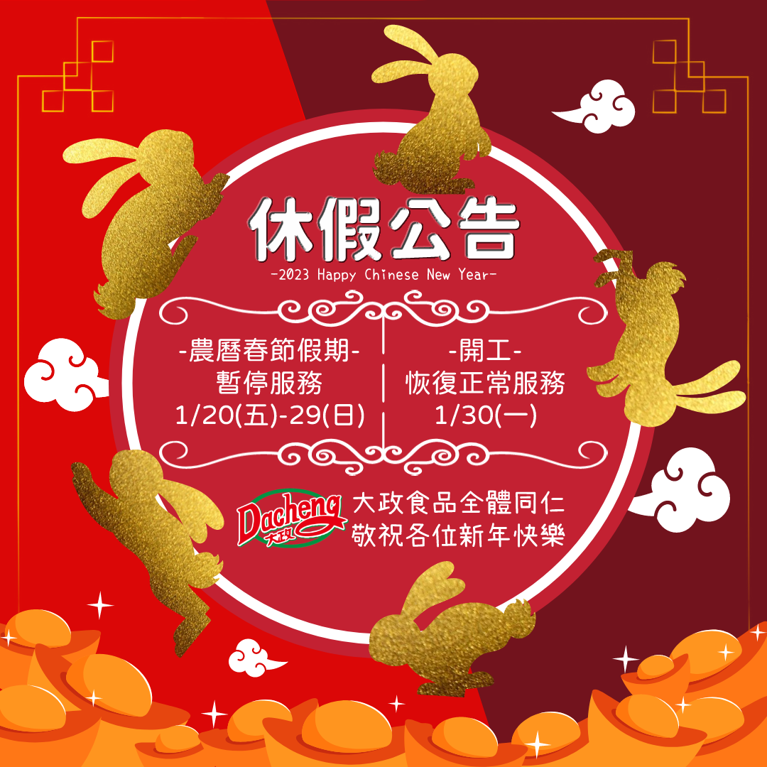 感謝各位的支持,農曆春節大政食品休假公告如下